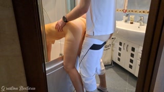 She was trying to clean the bath, while I was fucking her