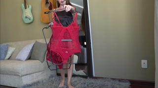 Sheer Red Leotard Elegant Lace Lingerie Try On | Full Length Mirror View | LeverageURAssets 4k