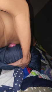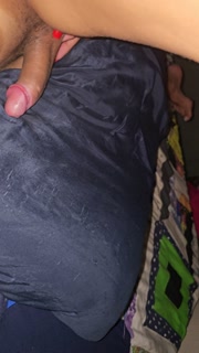 Shemale Ellyn ejaculated by brushing stick pillow