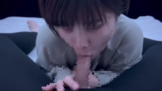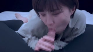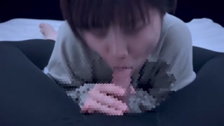 Short-cut college student with dark hair gets oral ejaculation in a thick blowjob and a lot of sperm