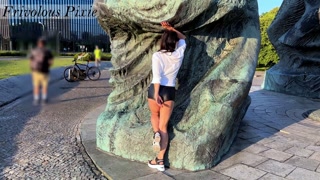 Shy Woman Scared of Being Caught by a Stranger. Public Flashing & Piss