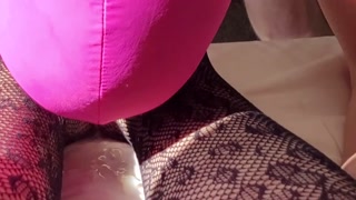 Sissy husband gets foot job from feet in fishnets and licks cum to clean up