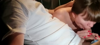 Sister gives blowjob to her stepbrother