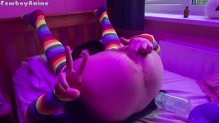 Size Queen Femboy Raine stretched by HUGE TOYS!