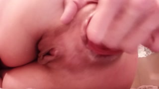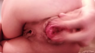 Skinny Sub pulls and plays with her prolapse