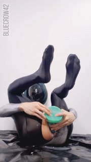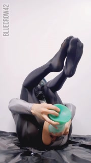 Slender femboy in shiny leotard & pantyhoses anal masturbates using an alien dildo