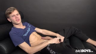Slim boy Jake Bode with nice abs jerking his cock