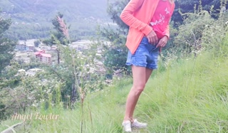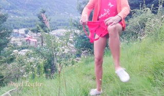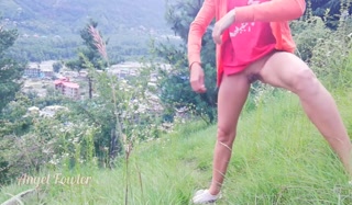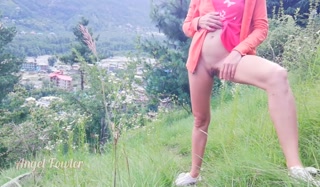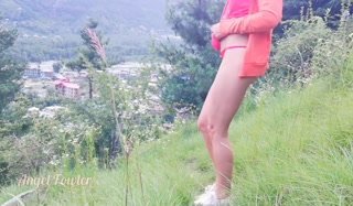 Slim teen came up to mountain for make the huge Waterfall over the city - Angel Fowler