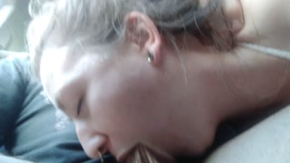 Sloppy Blowjob in the Car! Choking on Dick while Driving through a small town! Close Up Blowjob!