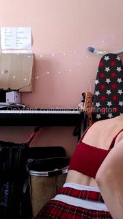 Slutty trans schoolgirl dildoes her throat and ass until it's leaking cum