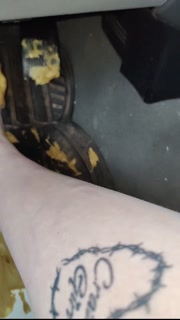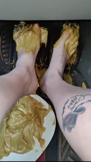 Smashing peanut butter in my Trucks pedals getting the stickiness all over (front & back view)