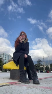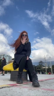 smoke redhead in street