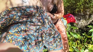 Smoking and squirting are my favorite things to do outside - MILF sucking and squirting outdoors