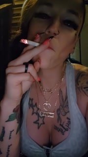 Smoking babe KandyxB with a titty peek, part 1