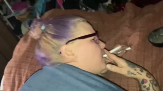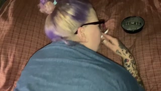 Smoking BBW sucks cock swallows cum, bbw doggystyle smoking takes a creampie
