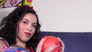Snow White and College girl black pantyhose foot tease