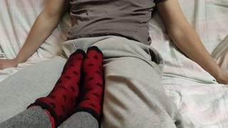 Sockjob in Over Socks with feet balls massage. He edges and cums on socks