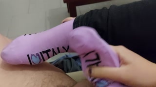 Socksjob with purple I Love Italy socks Onlyfans Mistress Darkshine