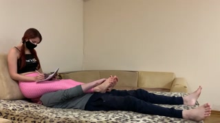 Sofi In Pink Leggings Fullweight Facesitting Ignore Femdom and Makes Her Chair Slave Massage Her Fee