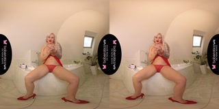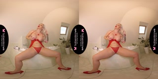 Solo blonde big tits Jarushka Ross hevy masturbating with glass in VR.