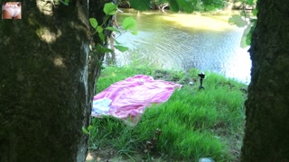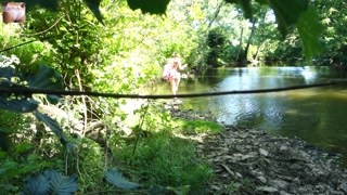 SOLO GIRL BIKES IN A SKIRT AND STRIPS OFF AT THE RIVER