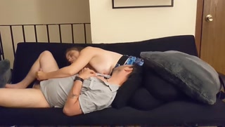 Soothing his headache with breast milk and a handjob