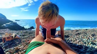 Сосет большой член с проглотил, и дает кончить в узкую жопу на нудийстком пляже