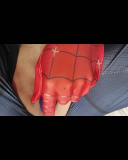 Spiderman kostym: styvsyster rör vid sig själv tills hon har en supersquirt