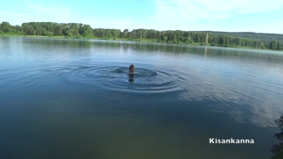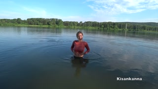Squirt in a public place! Swimming in the lake with clothes on!