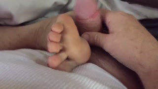 stepaunt Annette wakes up & jacks me off on her feet