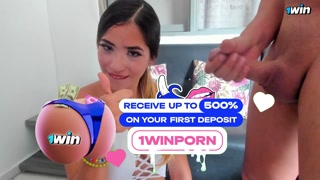 stepbrother masturbates and cum in smoking girl's face to give her a facial
