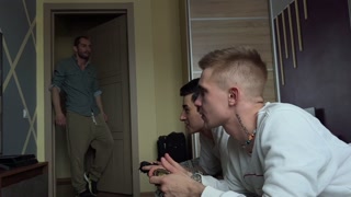 Stepdad and stepson fucked young friends in tight asses