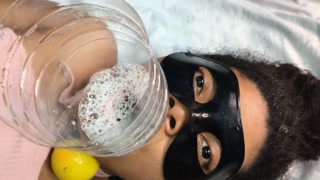 Stepdaughter drinking her golden juice (piss / urine)