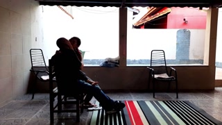 stepdaughter was smoking in the backyard and her stepfather seduced her until she had sex with him