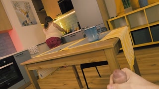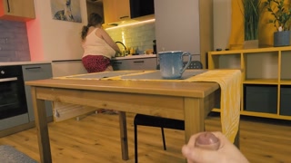 Stepmom noticed her stepson jerking off under the table and decided to help
