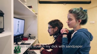 Stepsister seduces a nerd to copy his physics text.