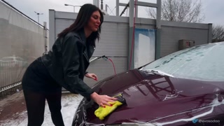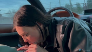 Stepsister washed the car and did not forget about the driver's cock. Swallowed a lot of sperm