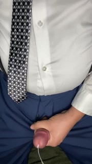 Straight Small dick daddy jacks off in business suit