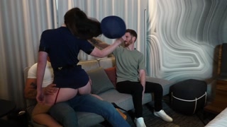 Stripper in police uniform booked for birthday suprise fucks friends bareback.