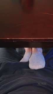 Stroking his cock with my feet under the table - Ava Brooke