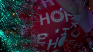 Stuck under the Christmas tree looking for a present and got it right in her hand