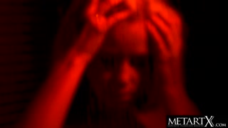 Stunning blonde squeezes her big natural tits as she masturbates