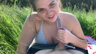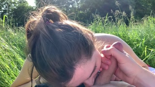 summer day dream - blowjob and mouth cumshot in tall grass