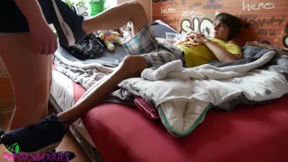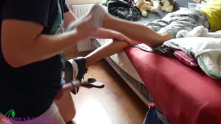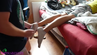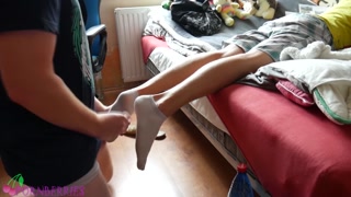 Sweaty socked feet footjob