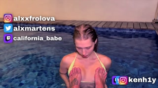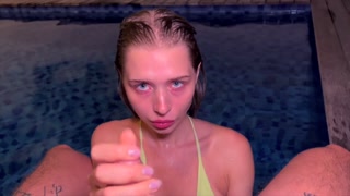 Sweet blowjob in the public pool. Cum on hair of Californiababe