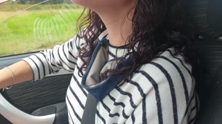 Taking a public car drive while playing with my small pussy