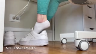 Taking off my dirty white KB socks & sweaty sneakers