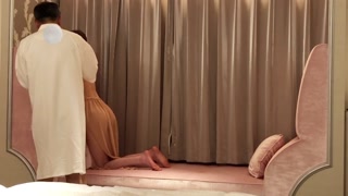 Tasting the slender body of a student wearing see-through lingerie on a pink sofa(ver.2).