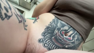 tattooed camgirl pees and pisses, she’s pissing and peeing.