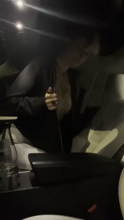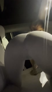 tattooed horny girl in leggings touching herself in her car